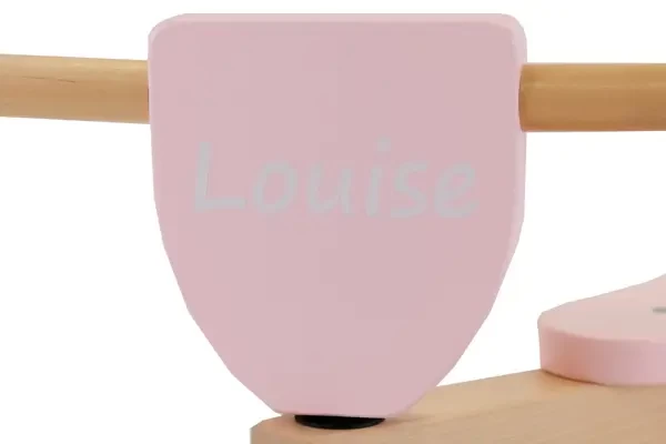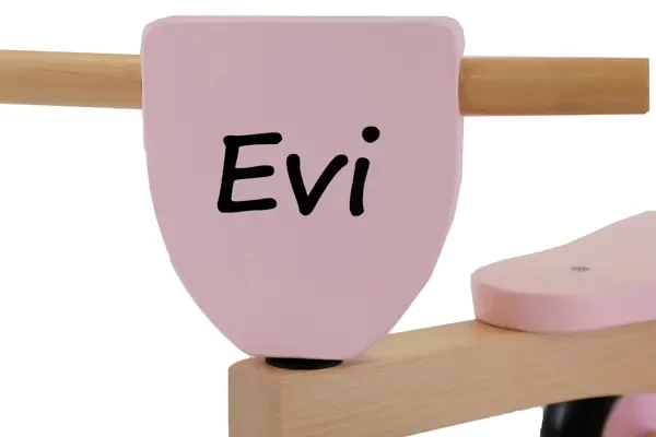 Een houten loopfiets voor kinderen vanaf 1 jaar. Het zadel heeft een vaste hoogte van 22 cm en het stuur is 34 cm hoog. Veiligheid is zeer belangrijk: het stuur heeft een begrenzer waardoor deze niet door kan klappen. En op de zitting zit een opzetstukje tegen het afglijden. De loopfiets staat stabiel op vier wielen. Deze zijn van een zacht kunststof, waardoor ze geluidsarm zijn en geen krassen maken. De Vintage Rider pink natural is een prachtige stabiele en duurzame loopfiets! Optioneel: een naamsticker of gravure op de voorzijde.